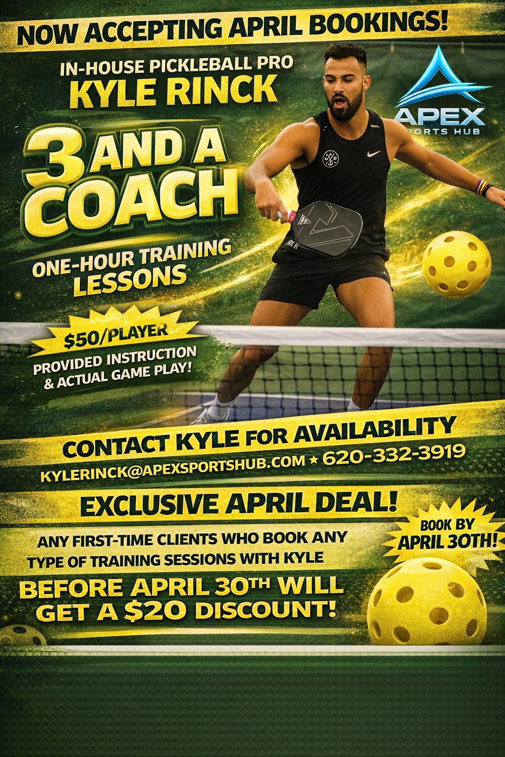 Welcome Kyle Rinck as the new Coordinator of all APEX Sports Hub pickleball programs!